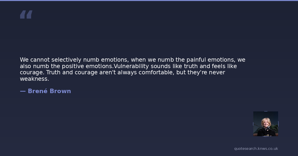 We cannot selectively numb emotions, when we numb the painful emotions, we also numb the positive emotions.Vulnerability sounds like truth and feels like courage. Truth and courage aren't always comfortable, but they're never weakness.