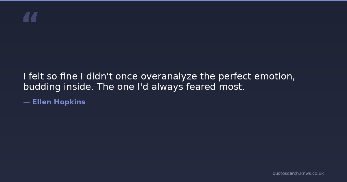 I felt so fine I didn't once overanalyze the perfect emotion, budding inside. The one I'd always feared most.