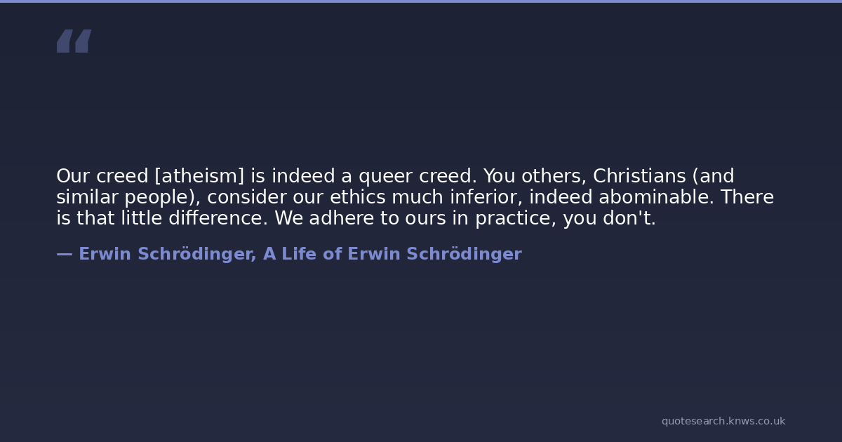 Our creed [atheism] is indeed a queer creed. You others, Christians (and similar people), consider our ethics much inferior, indeed abominable. There is that little difference. We adhere to ours in practice, you don't.