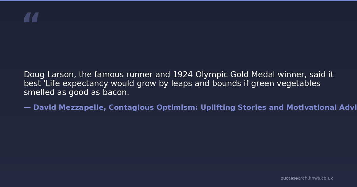 Doug Larson, the famous runner and 1924 Olympic Gold Medal winner, said it best 'Life expectancy would grow by leaps and bounds if green vegetables smelled as good as bacon.