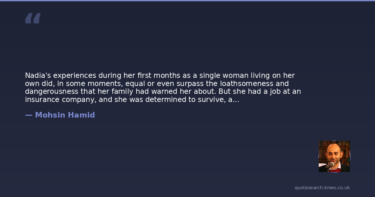 Nadia's experiences during her first months as a single woman living on her own did, in some moments, equal or even surpass the loathsomeness and dangerousness that her family had warned her about. But she had a job at an insurance company, and she was determined to survive, and so she did.