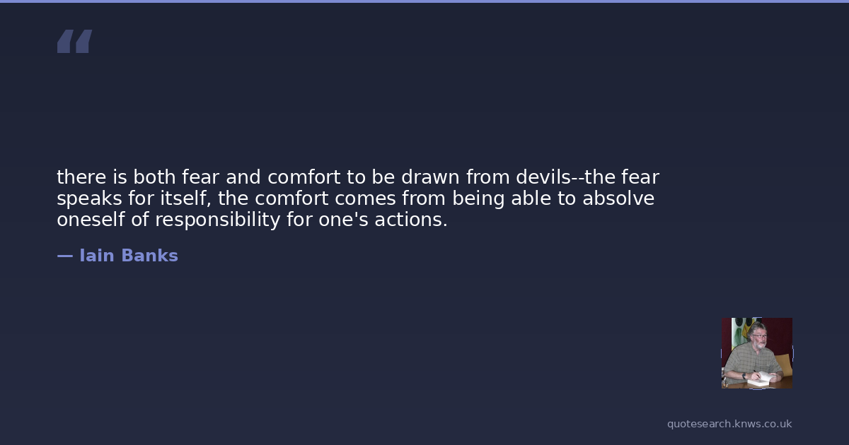 there is both fear and comfort to be drawn from devils--the fear speaks for itself, the comfort comes from being able to absolve oneself of responsibility for one's actions.