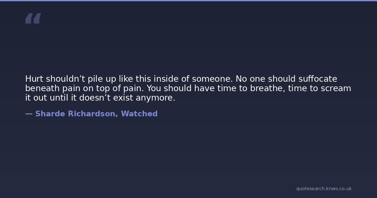 Hurt shouldn’t pile up like this inside of someone. No one should suffocate beneath pain on top of pain. You should have time to breathe, time to scream it out until it doesn’t exist anymore.