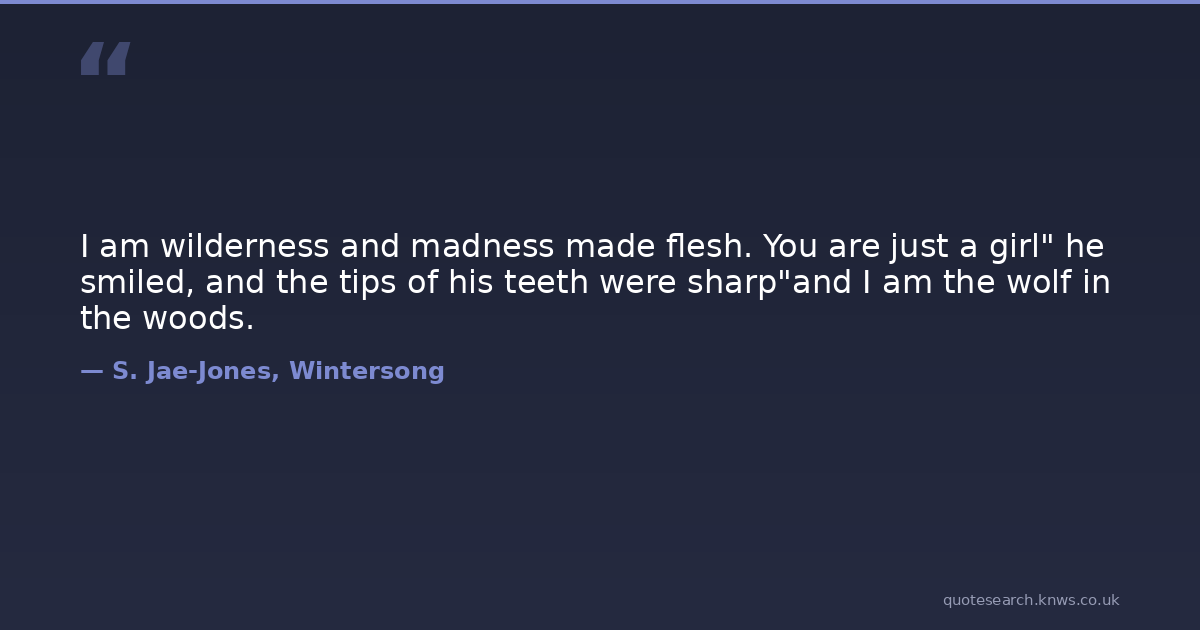 I am wilderness and madness made flesh. You are just a girl" he smiled, and the tips of his teeth were sharp"and I am the wolf in the woods.