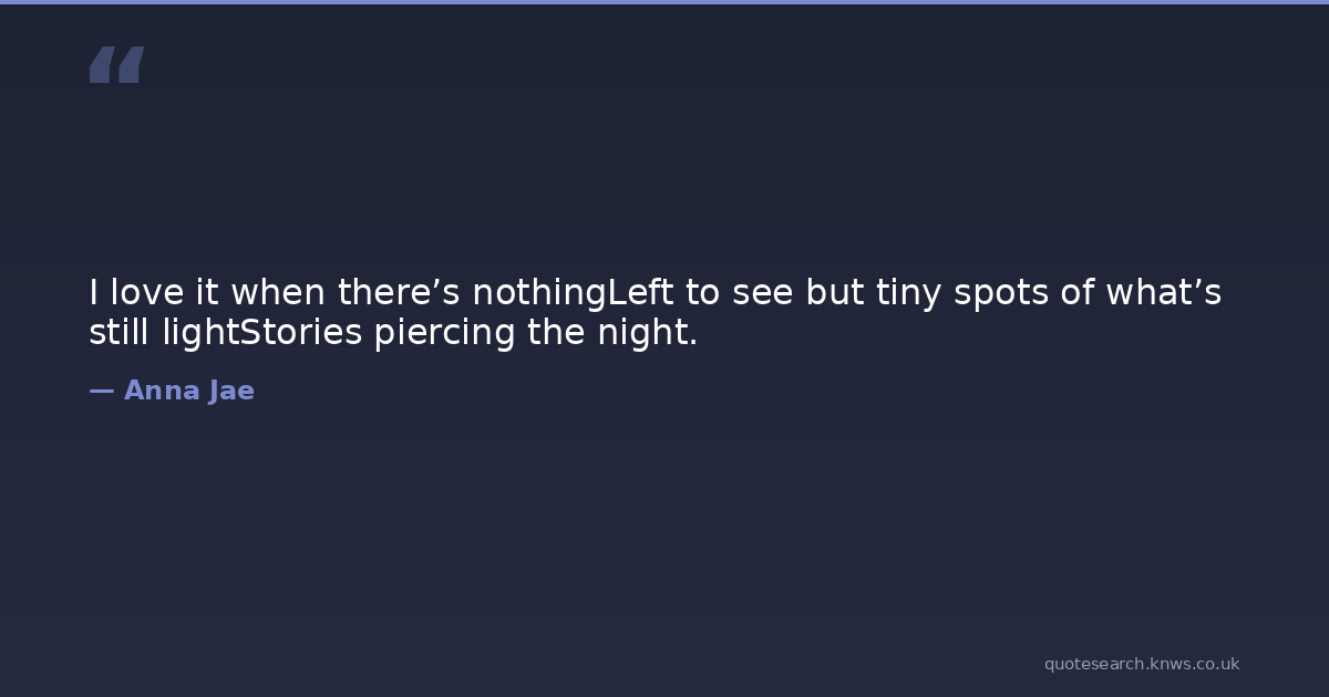 I love it when there’s nothingLeft to see but tiny spots of what’s still lightStories piercing the night.