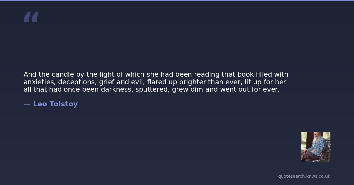 And the candle by the light of which she had been reading that book filled with anxieties, deceptions, grief and evil, flared up brighter than ever, lit up for her all that had once been darkness, sputtered, grew dim and went out for ever.