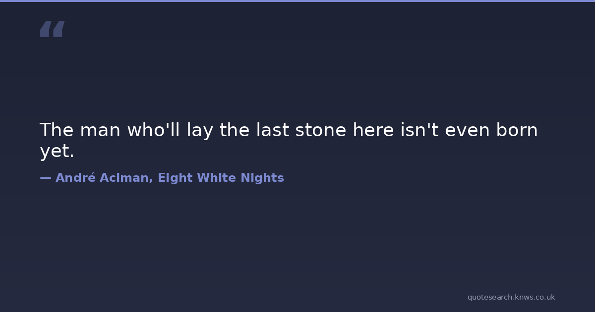 The man who'll lay the last stone here isn't even born yet. perspective profound Download Image Share on X Share on Facebook Copy Link