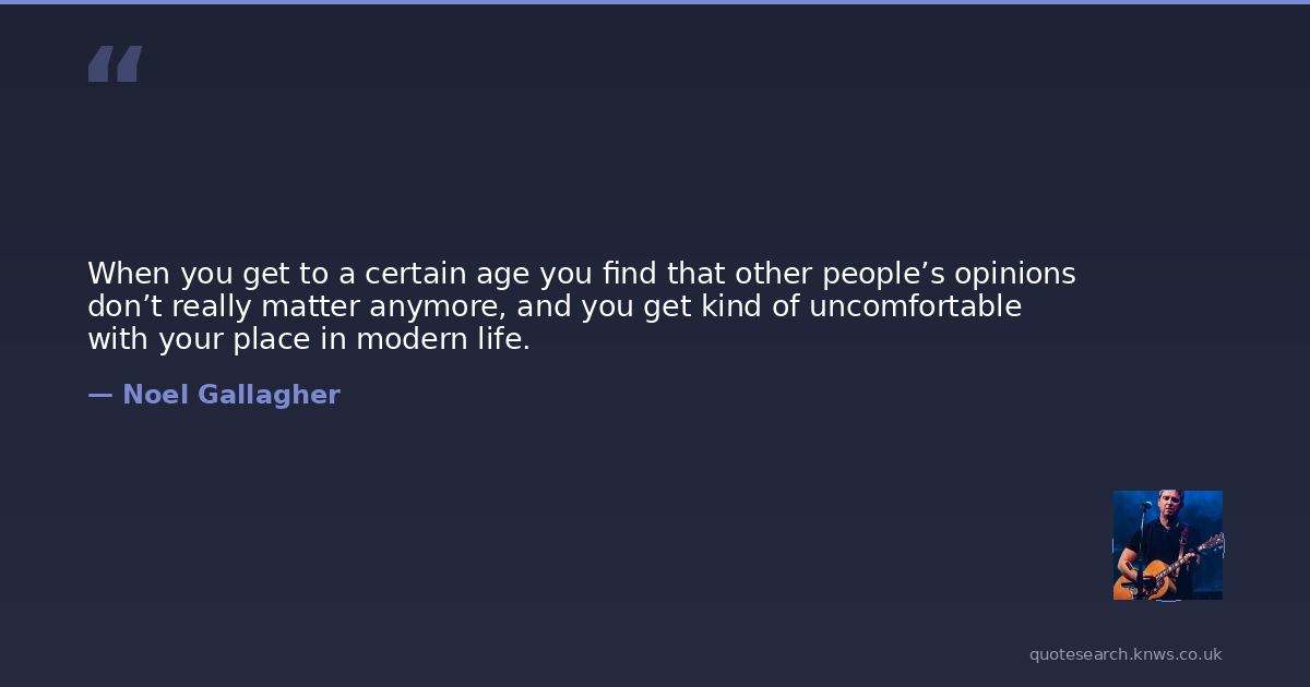 When you get to a certain age you find that other people’s opinions don’t really matter anymore, and you get kind of uncomfortable with your place in modern life.