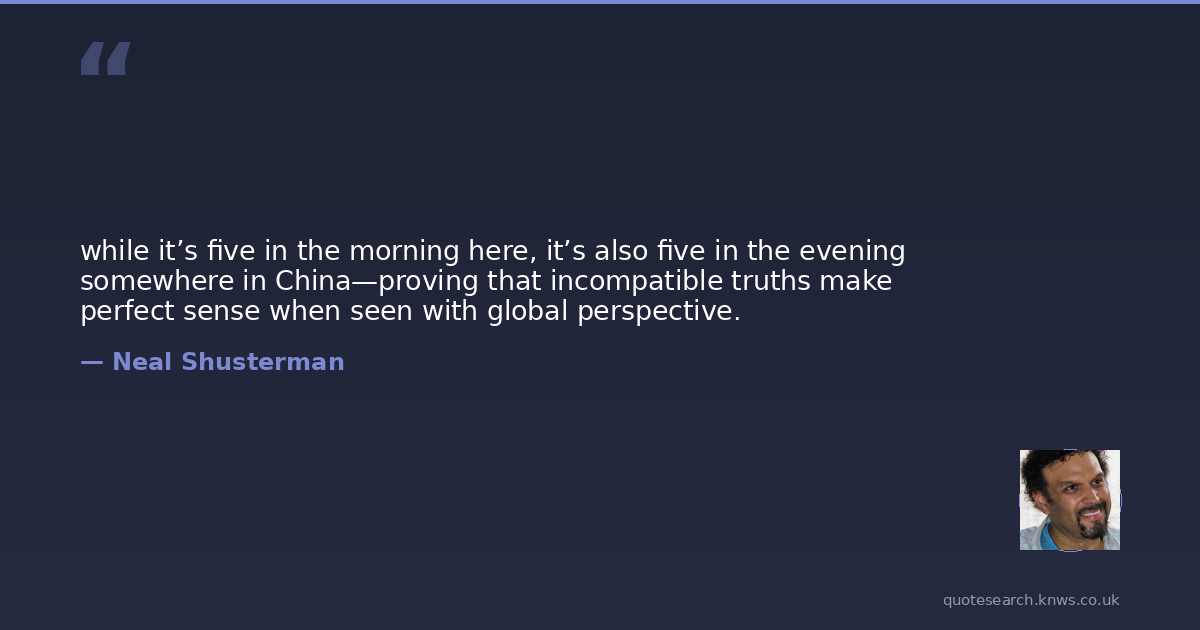 while it’s five in the morning here, it’s also five in the evening somewhere in China—proving that incompatible truths make perfect sense when seen with global perspective.