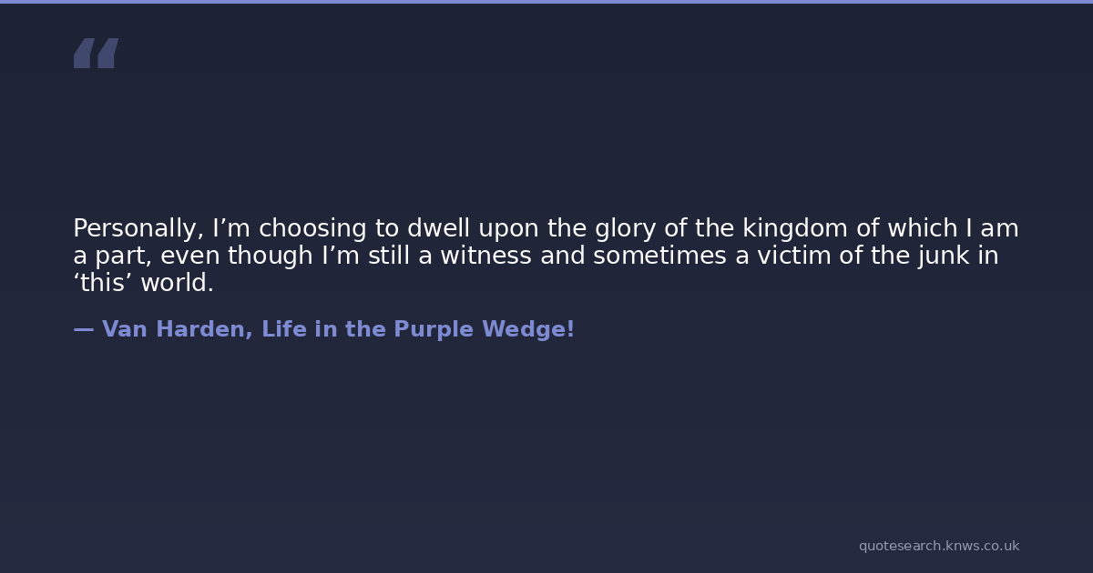 Personally, I’m choosing to dwell upon the glory of the kingdom of which I am a part, even though I’m still a witness and sometimes a victim of the junk in ‘this’ world.