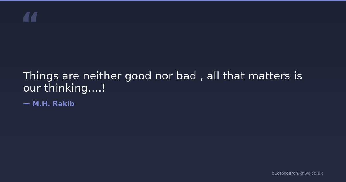 Things are neither good nor bad , all that matters is our thinking....! philosophy-of-life Download Image Share on X Share on Facebook Copy Link