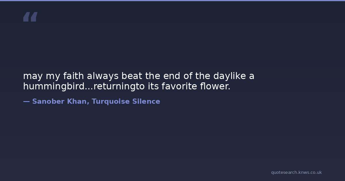 may my faith always beat the end of the daylike a hummingbird...returningto its favorite flower. deep-thoughts faith flowers hummingbird life-quotes poetry poetry-quotes profound spiritual sunset Download Image Share on X Share on Facebook Copy Link