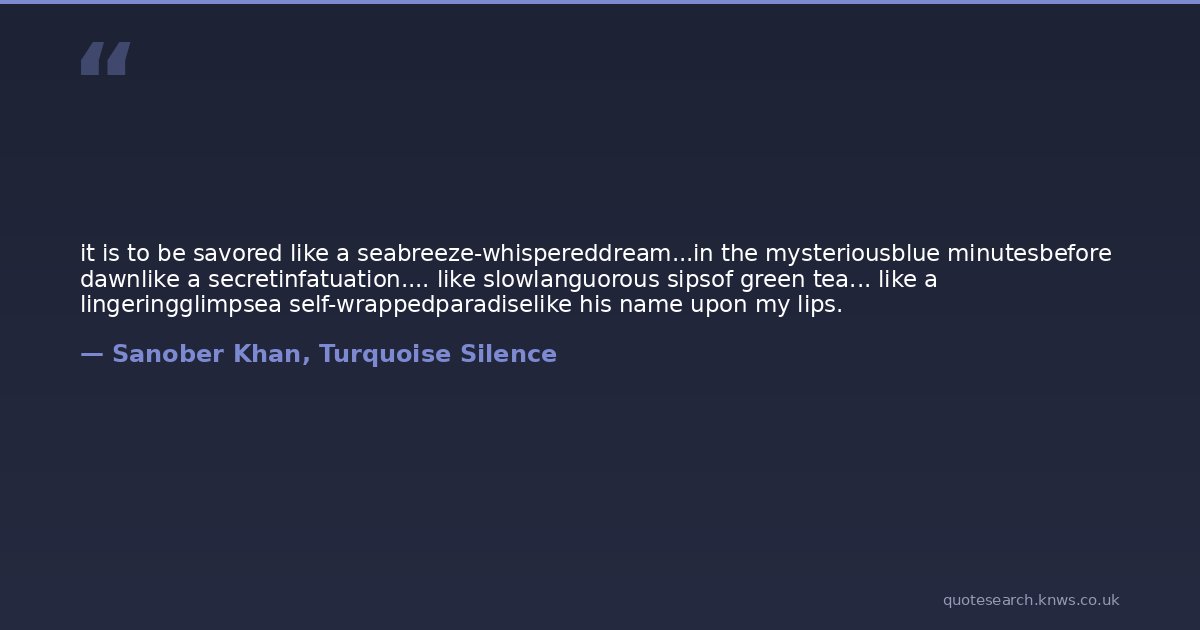it is to be savored like a seabreeze-whispereddream...in the mysteriousblue minutesbefore dawnlike a secretinfatuation.... like slowlanguorous sipsof green tea... like a lingeringglimpsea self-wrappedparadiselike his name upon my lips.