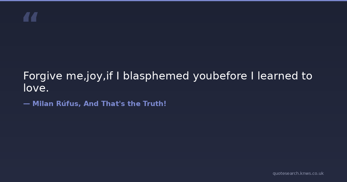 Forgive me,joy,if I blasphemed youbefore I learned to love. poetry-quotes Download Image Share on X Share on Facebook Copy Link