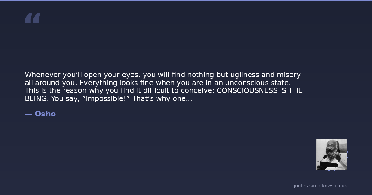 Whenever you’ll open your eyes, you will find nothing but ugliness and misery all around you. Everything looks fine when you are in an unconscious state. This is the reason why you find it difficult to conceive: CONSCIOUSNESS IS THE BEING. You say, ”Impossible!” That’s why one needs to go through pain. That is called tapascharya, spiritual practice. Whenever one begins to become aware, first he will have to go through suffering. For lives you have created misery around you, who else would pass through it if not you? That is what we have called the karma.