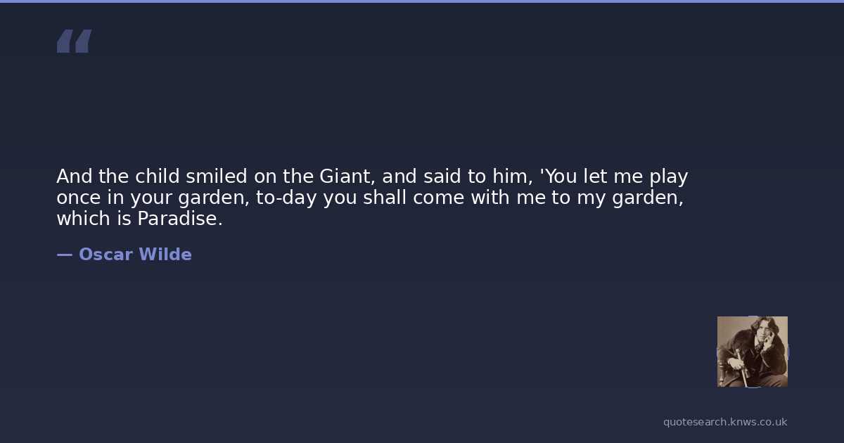 And the child smiled on the Giant, and said to him, 'You let me play once in your garden, to-day you shall come with me to my garden, which is Paradise.