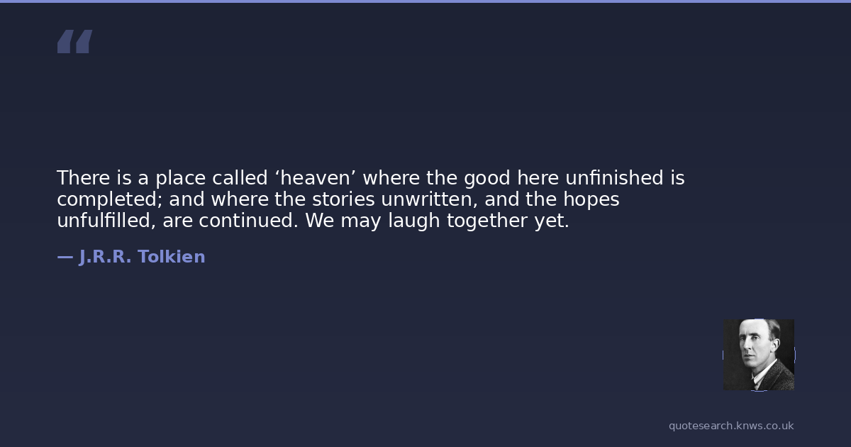 There is a place called ‘heaven’ where the good here unfinished is completed; and where the stories unwritten, and the hopes unfulfilled, are continued. We may laugh together yet.