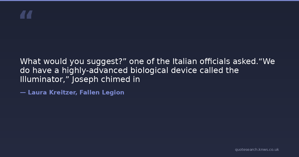 What would you suggest?” one of the Italian officials asked.“We do have a highly-advanced biological device called the Illuminator,” Joseph chimed in