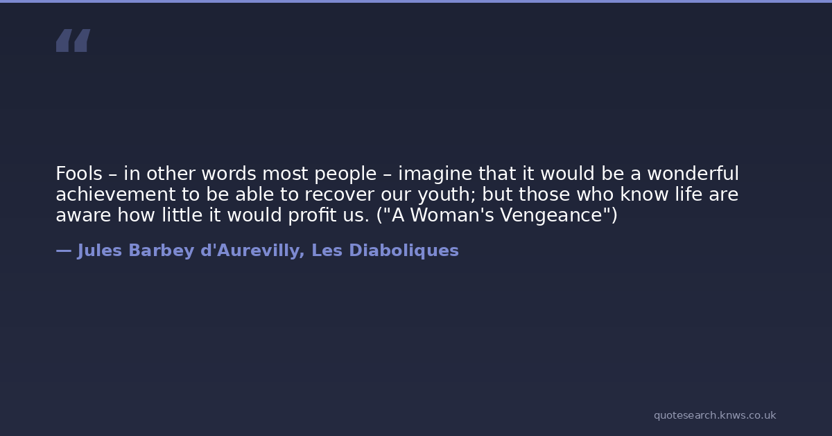 Fools – in other words most people – imagine that it would be a wonderful achievement to be able to recover our youth; but those who know life are aware how little it would profit us. ("A Woman's Vengeance")