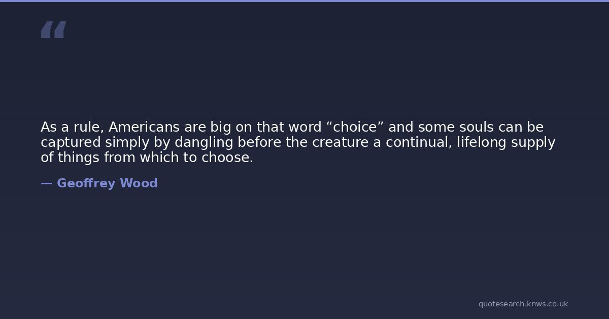 As a rule, Americans are big on that word “choice” and some souls can be captured simply by dangling before the creature a continual, lifelong supply of things from which to choose.