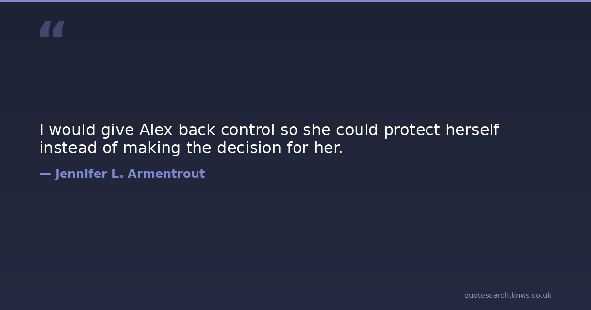 I would give Alex back control so she could protect herself instead of making the decision for her.