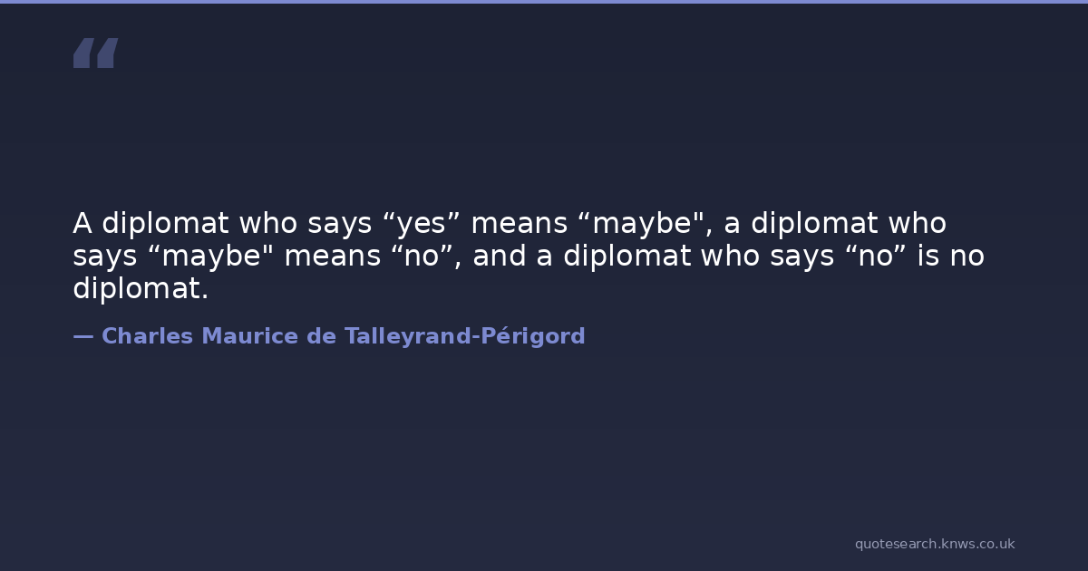 A diplomat who says “yes” means “maybe", a diplomat who says “maybe" means “no”, and a diplomat who says “no” is no diplomat.