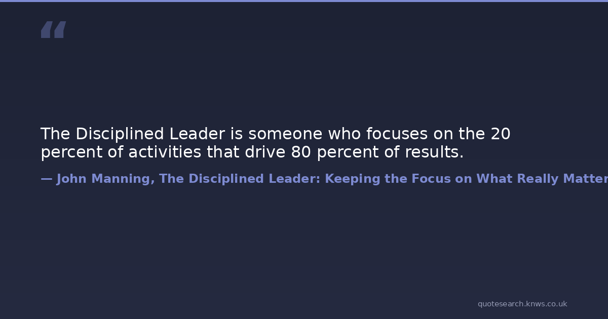 The Disciplined Leader is someone who focuses on the 20 percent of activities that drive 80 percent of results.