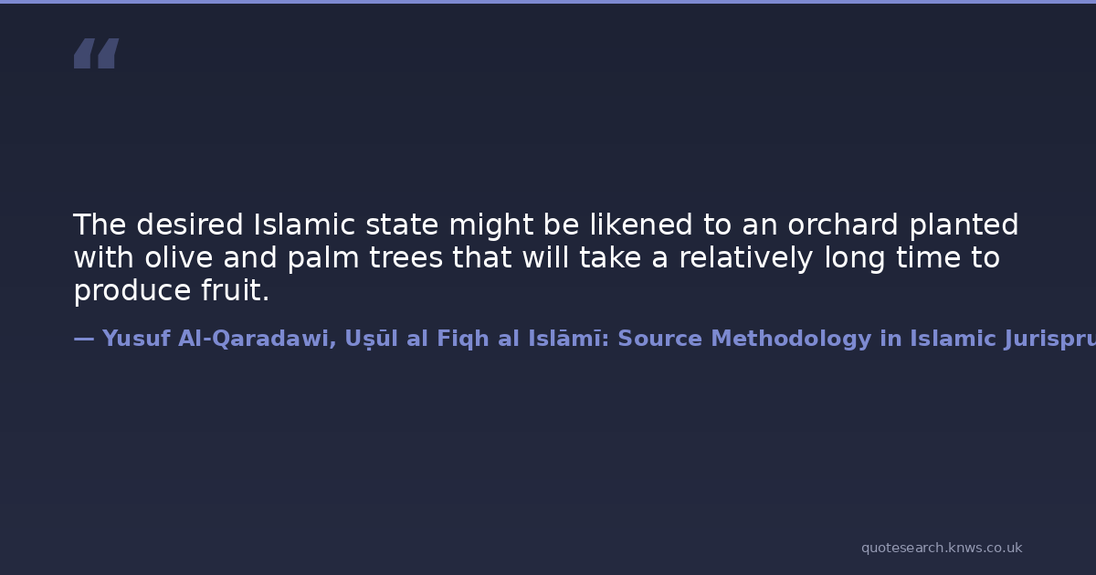 The desired Islamic state might be likened to an orchard planted with olive and palm trees that will take a relatively long time to produce fruit.