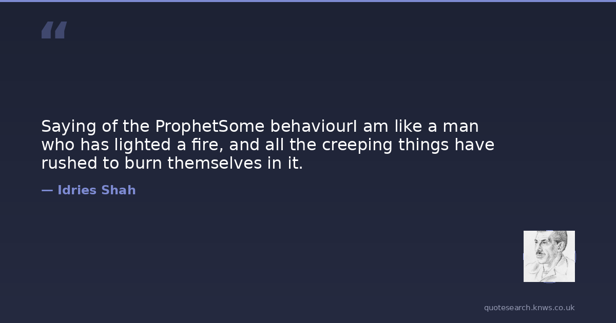 Saying of the ProphetSome behaviourI am like a man who has lighted a fire, and all the creeping things have rushed to burn themselves in it.