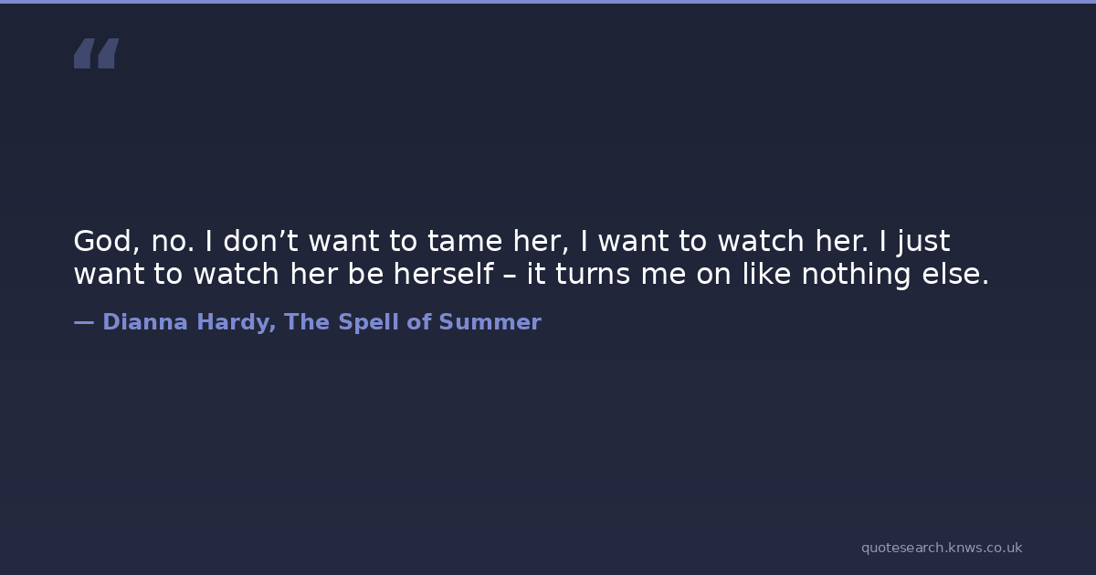 God, no. I don’t want to tame her, I want to watch her. I just want to watch her be herself – it turns me on like nothing else.