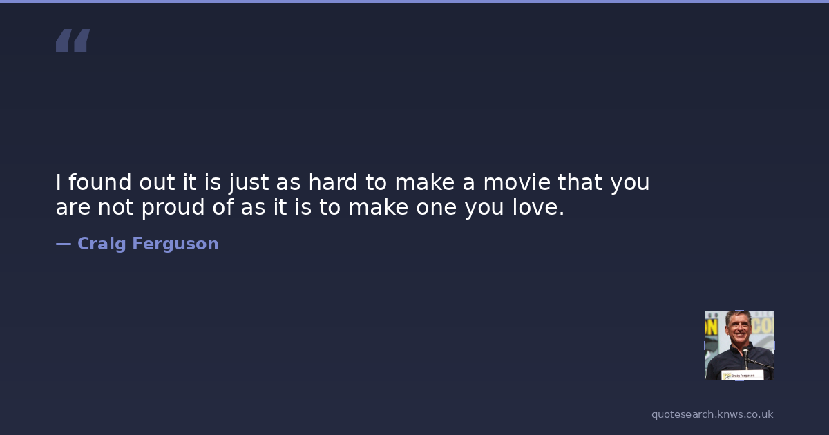 I found out it is just as hard to make a movie that you are not proud of as it is to make one you love.