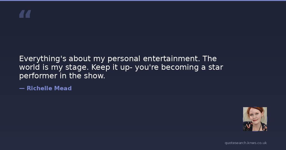 Everything's about my personal entertainment. The world is my stage. Keep it up- you're becoming a star performer in the show.