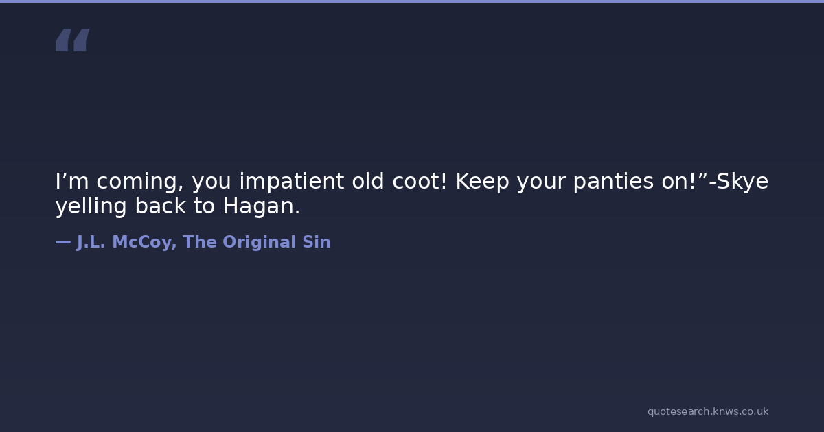 I’m coming, you impatient old coot! Keep your panties on!”-Skye yelling back to Hagan.