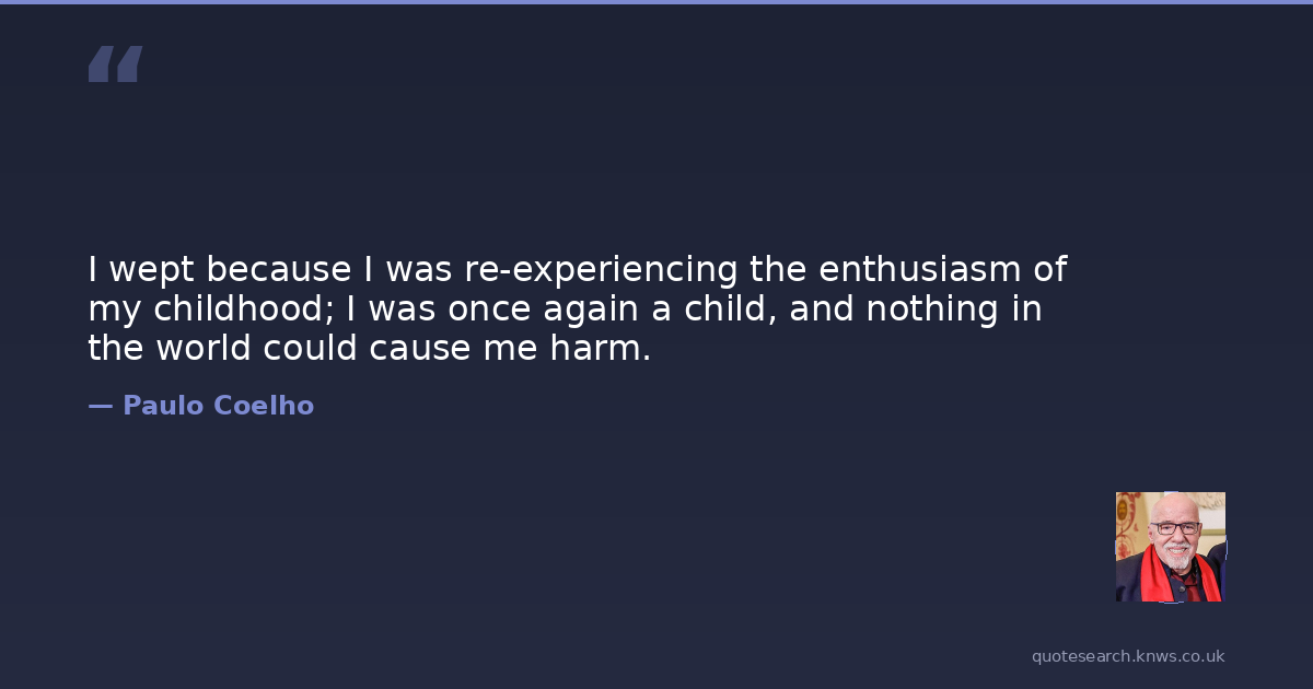 I wept because I was re-experiencing the enthusiasm of my childhood; I was once again a child, and nothing in the world could cause me harm.