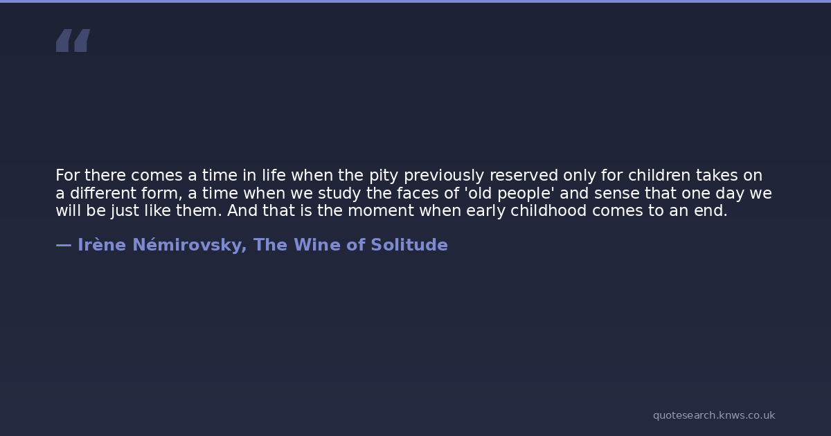 For there comes a time in life when the pity previously reserved only for children takes on a different form, a time when we study the faces of 'old people' and sense that one day we will be just like them. And that is the moment when early childhood comes to an end.