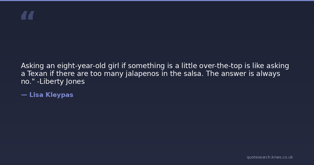 Asking an eight-year-old girl if something is a little over-the-top is like asking a Texan if there are too many jalapenos in the salsa. The answer is always no." -Liberty Jones