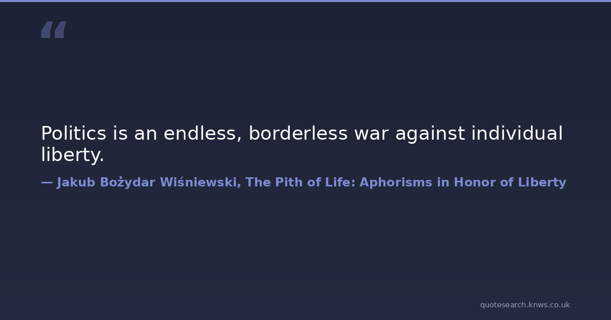 Politics is an endless, borderless war against individual liberty. individuality liberty politics war Download Image Share on X Share on Facebook Copy Link