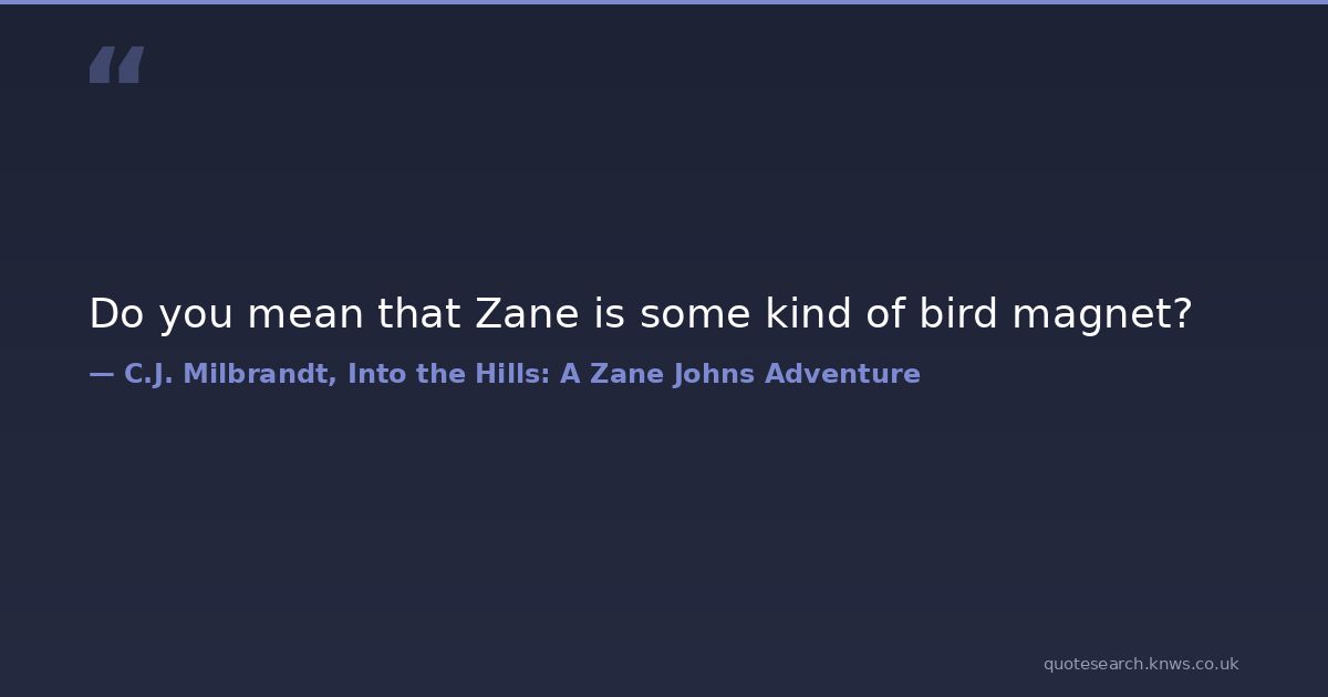 Do you mean that Zane is some kind of bird magnet?