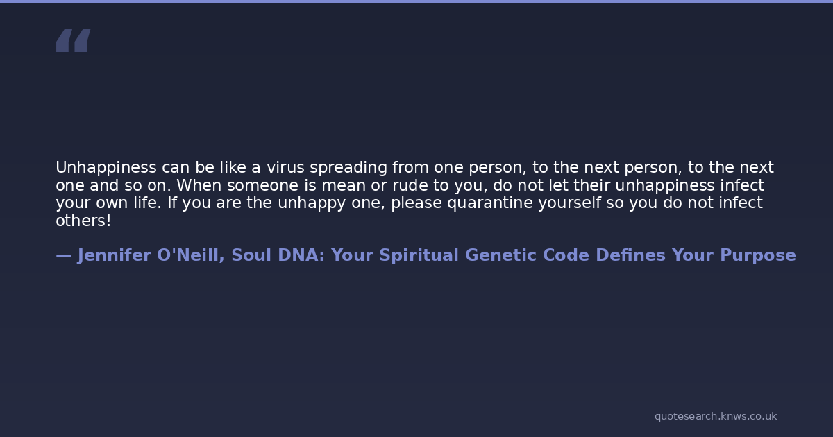 Unhappiness can be like a virus spreading from one person, to the next person, to the next one and so on. When someone is mean or rude to you, do not let their unhappiness infect your own life. If you are the unhappy one, please quarantine yourself so you do not infect others!
