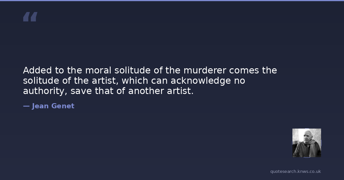 Added to the moral solitude of the murderer comes the solitude of the artist, which can acknowledge no authority, save that of another artist.