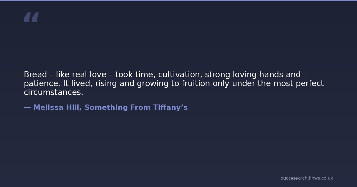 Bread – like real love – took time, cultivation, strong loving hands and patience. It lived, rising and growing to fruition only under the most perfect circumstances.