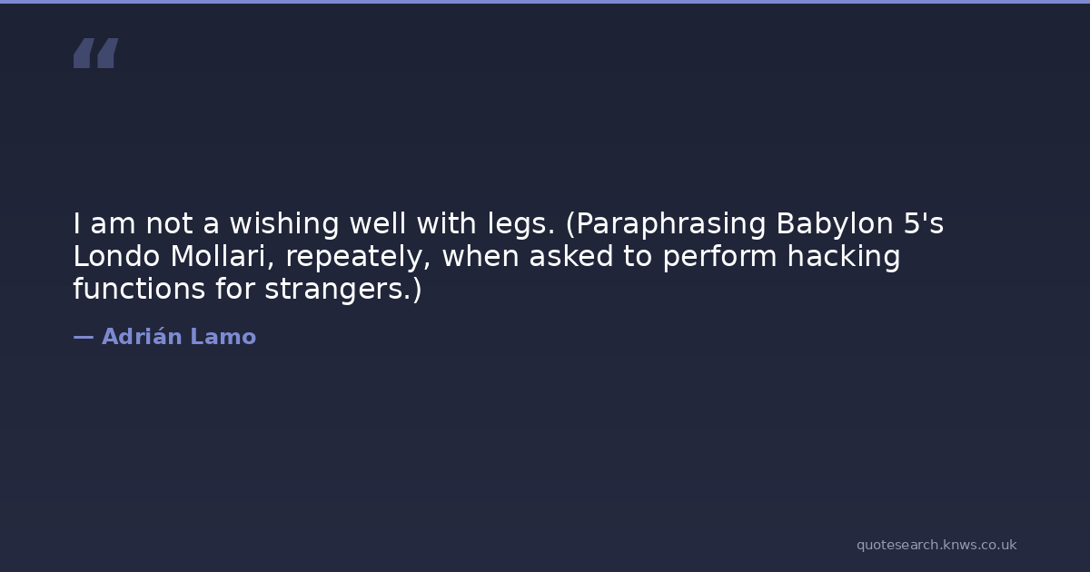 I am not a wishing well with legs. (Paraphrasing Babylon 5's Londo Mollari, repeately, when asked to perform hacking functions for strangers.)