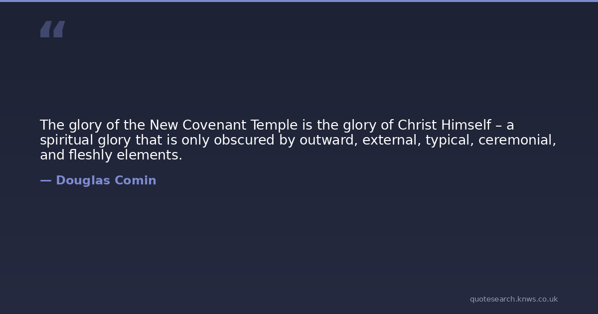 The glory of the New Covenant Temple is the glory of Christ Himself – a spiritual glory that is only obscured by outward, external, typical, ceremonial, and fleshly elements.
