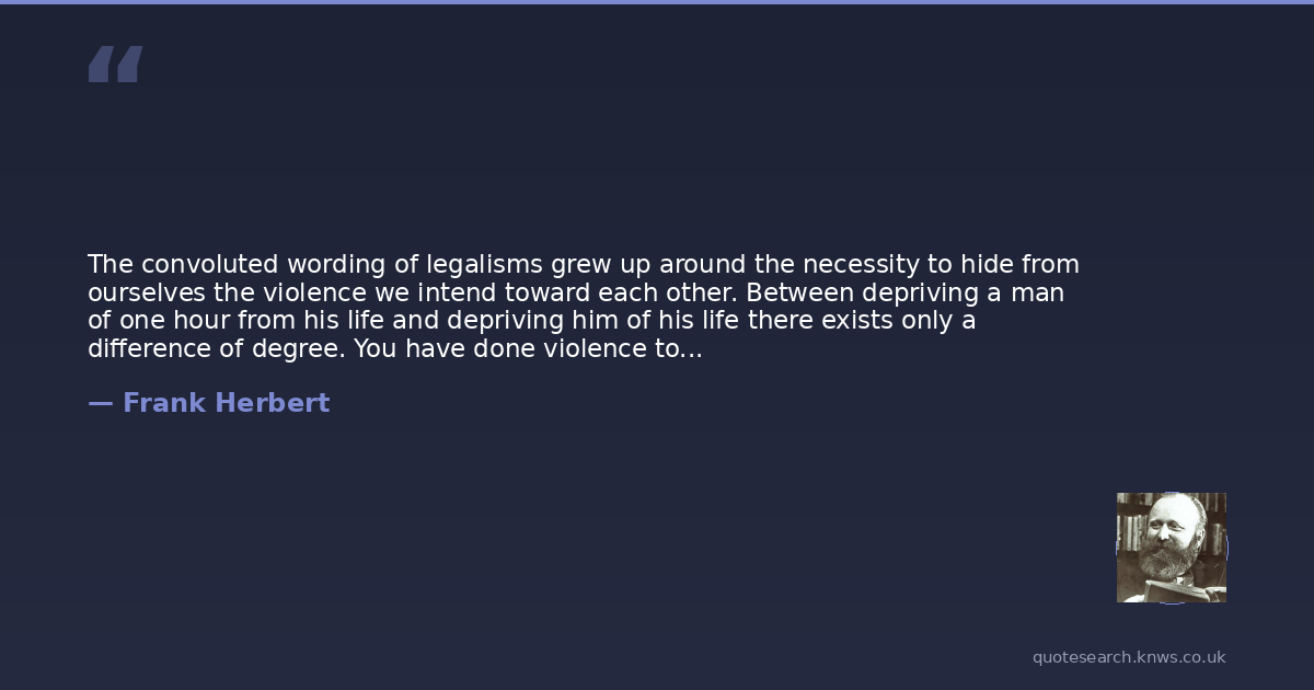 The convoluted wording of legalisms grew up around the necessity to hide from ourselves the violence we intend toward each other. Between depriving a man of one hour from his life and depriving him of his life there exists only a difference of degree. You have done violence to him, consumed his energy. Elaborate euphemisms may conceal your intent to kill, but behind any use of power over another the ultimate assumption remains: "I feed on your energy.