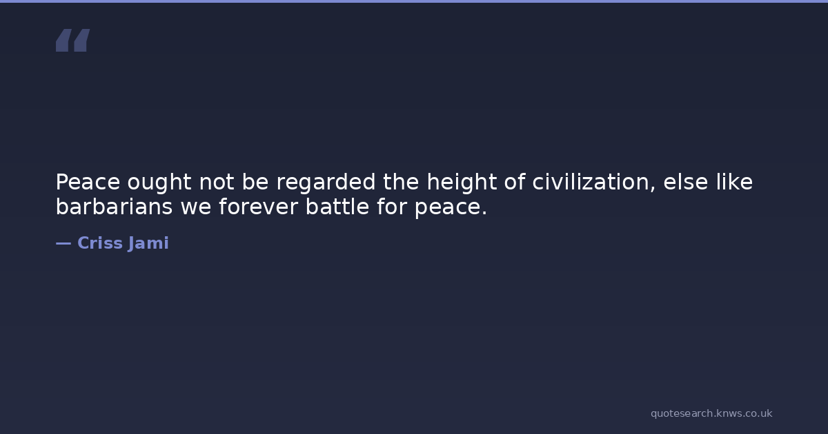Peace ought not be regarded the height of civilization, else like barbarians we forever battle for peace.