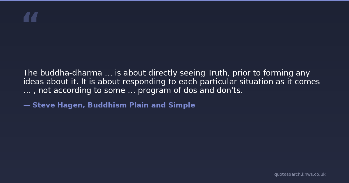 The buddha-dharma … is about directly seeing Truth, prior to forming any ideas about it. It is about responding to each particular situation as it comes … , not according to some … program of dos and don'ts.