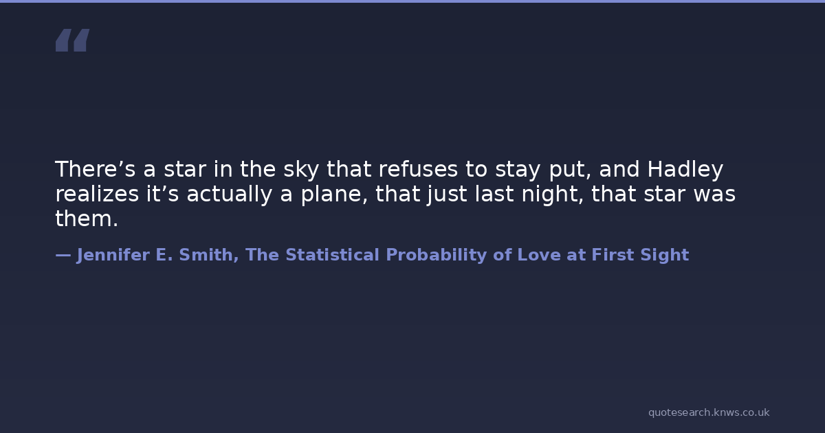 There’s a star in the sky that refuses to stay put, and Hadley realizes it’s actually a plane, that just last night, that star was them.