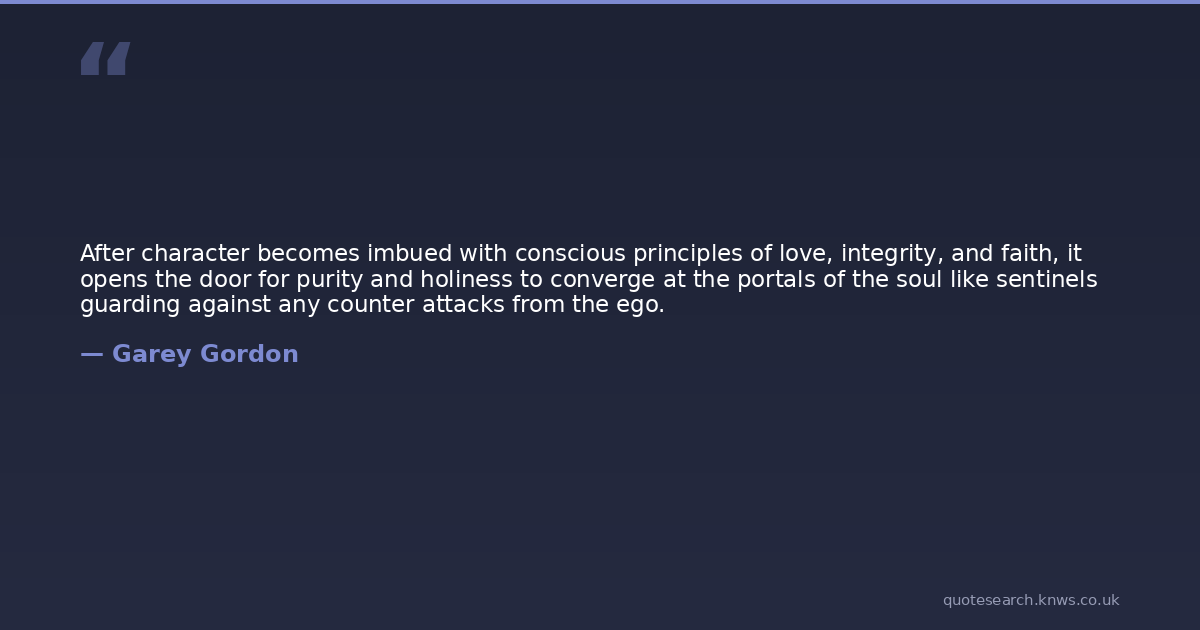 After character becomes imbued with conscious principles of love, integrity, and faith, it opens the door for purity and holiness to converge at the portals of the soul like sentinels guarding against any counter attacks from the ego.