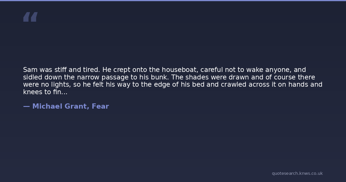Sam was stiff and tired. He crept onto the houseboat, careful not to wake anyone, and sidled down the narrow passage to his bunk. The shades were drawn and of course there were no lights, so he felt his way to the edge of his bed and crawled across it on hands and knees to find his pillow.He collapsed on his back.But even at the edge of sleep he was aware of something different about the bed.Then he felt soft breath on his cheek.He turned and her lips were on his. Not gentle. Not soft. She kissed him hard, and it was like he’d been awakened by an electric power line.She kissed him and slid on top of him.Their bodies did the rest.At some point in the hours that followed he said, “Astrid?”“Don’t you think you should have made sure of that about three times ago?” Astrid said in her familiar, slightly condescending tone.They said many things to each other after that, but nothing that involved words.