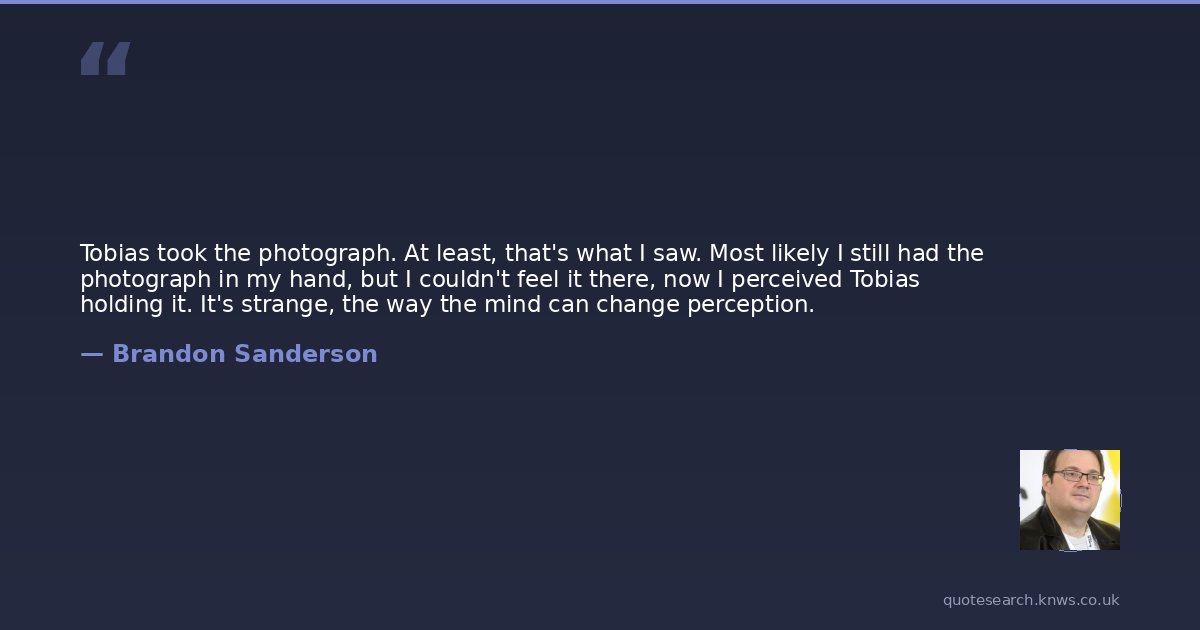 Tobias took the photograph. At least, that's what I saw. Most likely I still had the photograph in my hand, but I couldn't feel it there, now I perceived Tobias holding it. It's strange, the way the mind can change perception.